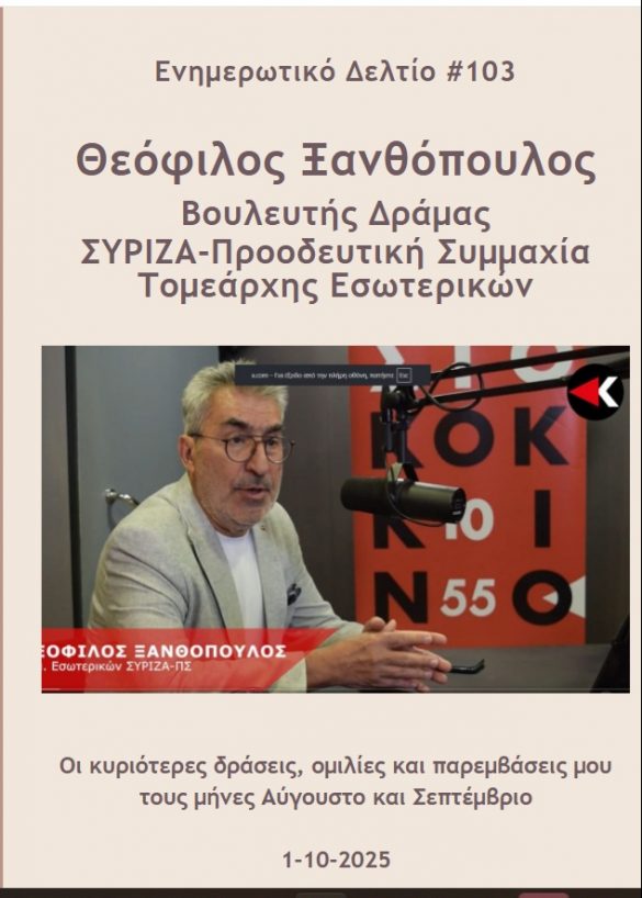 Ενημερωτικό Δελτίο #103ΝέαX1 Οκτωβρίου, 2025Οι κυριότερες δράσεις, ομιλίες και κοινοβουλευτικές παρεμβάσεις μου κατά τους μήνες Αύγουστο και Σεπτέμβριο
